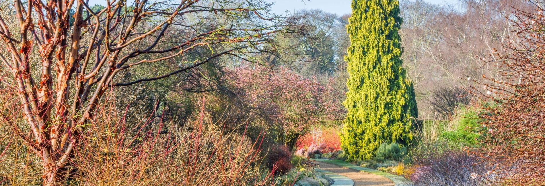 Our Winter Garden is ablaze with colour from early December and is continually changing throughout the Winter months. Ornamental trees, striking-coloured stems, fragrant shrubs and beautiful bulbs, combine to create a Winter wonderland, even on the dullest of days.