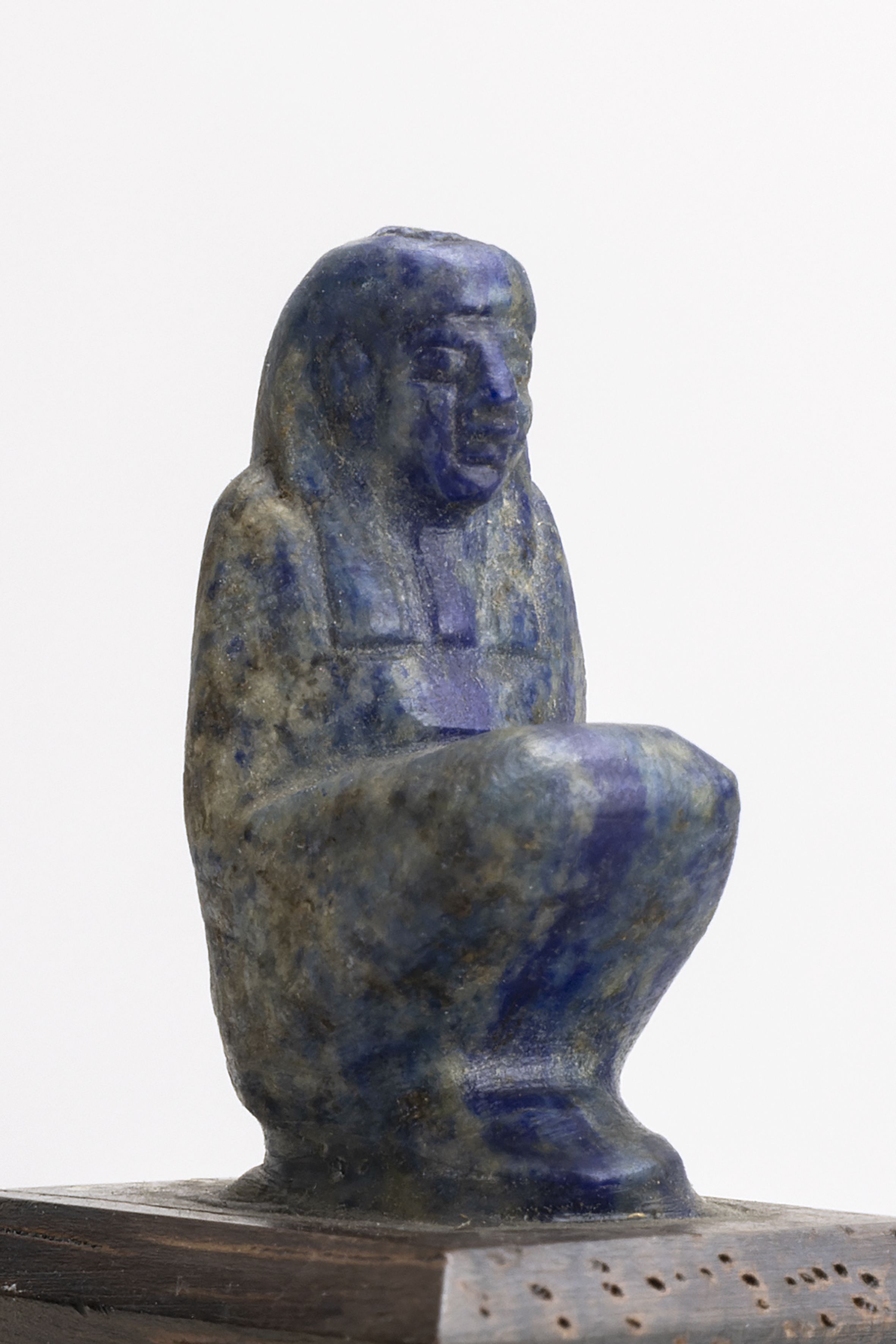Small amulets made of lapis lazuli were associated with various Egyptian deities, and used to provide protection against harm. This is an Amulet of the goddess Maat. Egypt, 1550 BCE - 641 CE. Photographed by Jos Dudding. MAA 1948.2730