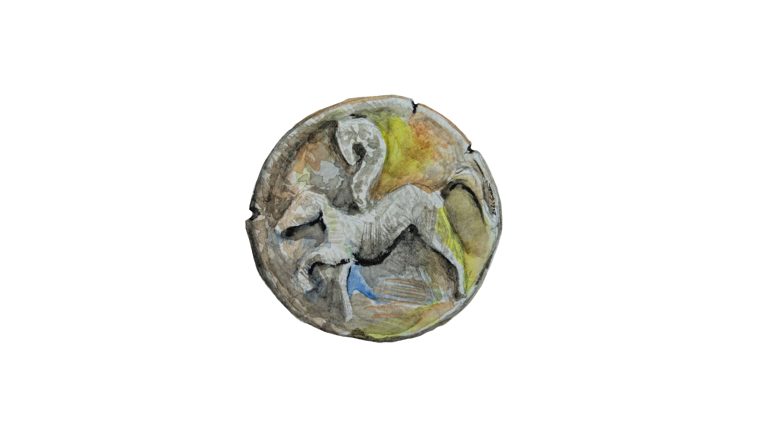 Corinth coin (Pronnoi, Kefalonia). Print (original watercolour). Copyright: Zofia Guertin