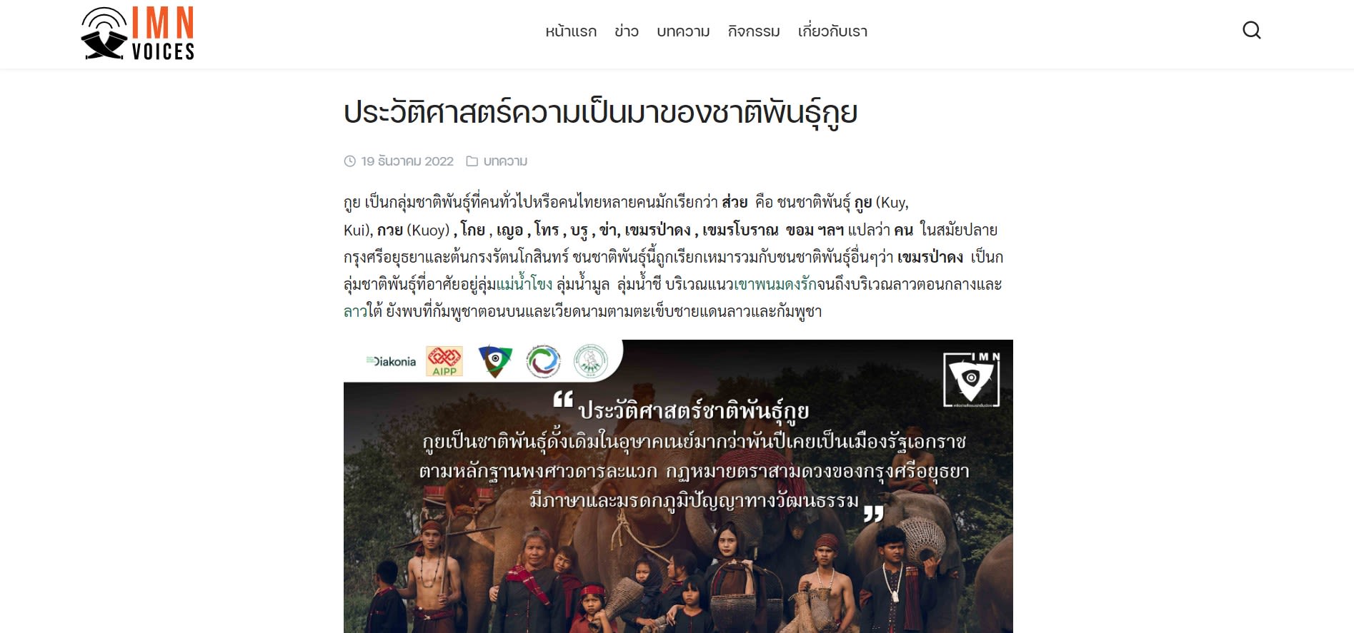 Who are the Kui? Watch this YouTube video to hear more about the Kui directly from hmor ajiang and members of the Kui community in Thailand