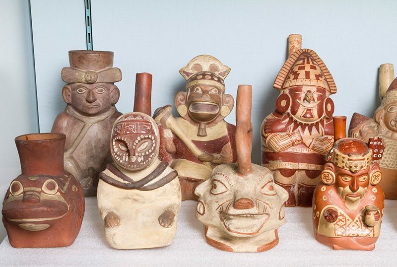 Moche Pottery on Display in the Andrews Gallery.