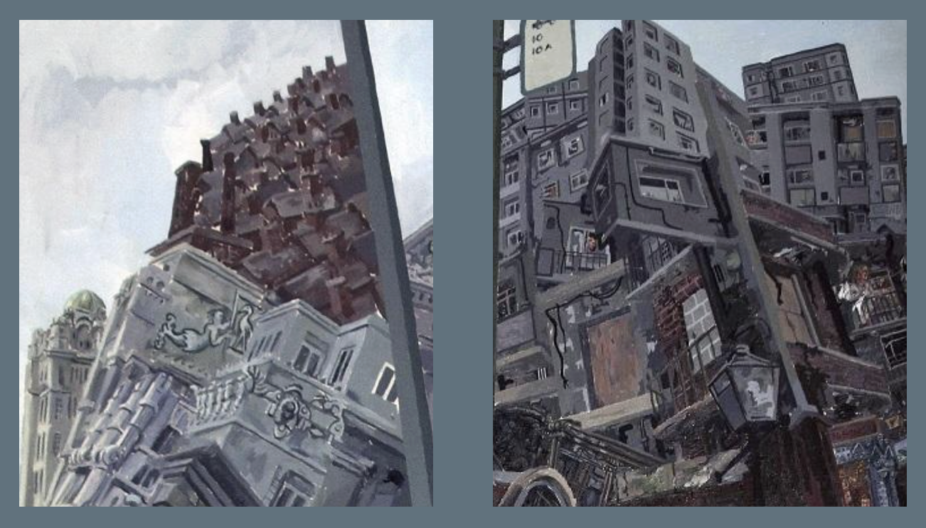 Oil painting titled Liverpool, Tony Phillips, 1995. Victoria Gallery and Museum, Liverpool.