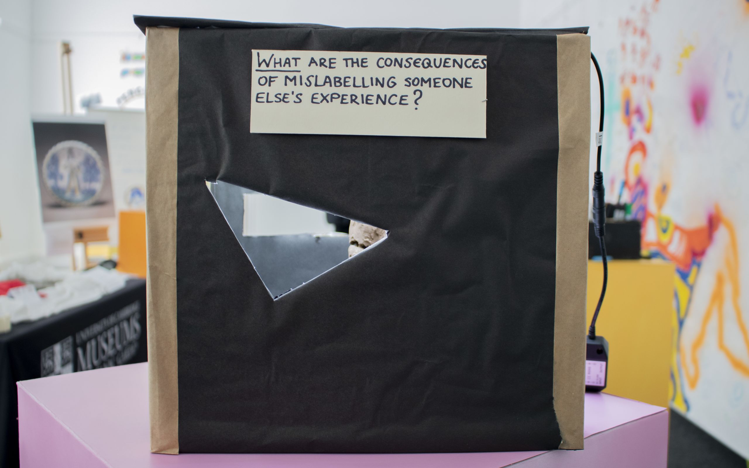 It was curated over two days in 2019 by the participants of the Museum Remix workshop. They worked with the stories from Bridging Binaries LGBTQ+ tours and interrogated the collections, produced new artworks, and drafted new labels.