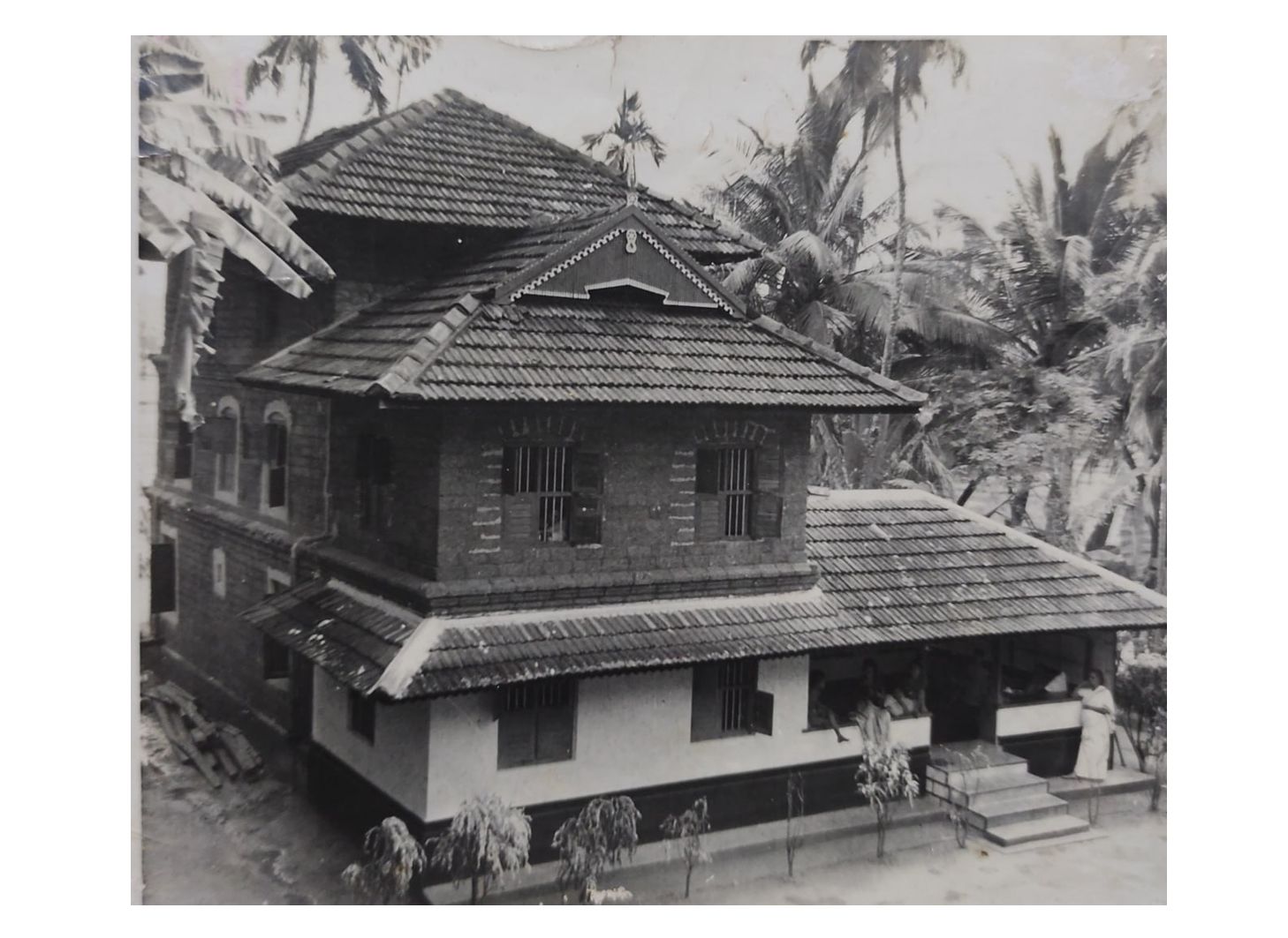 A three-storeyed Nair tharavad. Photograph from family records, provided by Devaki Vadakepat Menon. c. 1960.