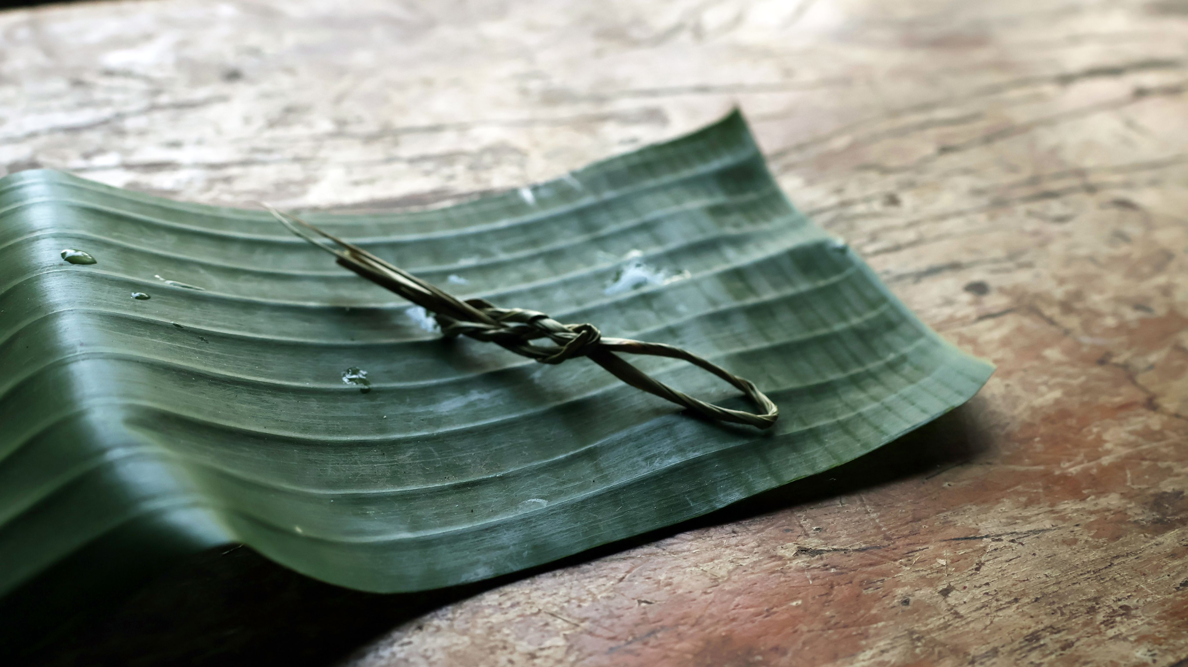 A pavitram ring crafted out of dharba grass, worn by Namboothiri priests during rituals, which is later disposed of by releasing the ring into a body of water. Photograph by Devaki Vadakepat Menon. 2025