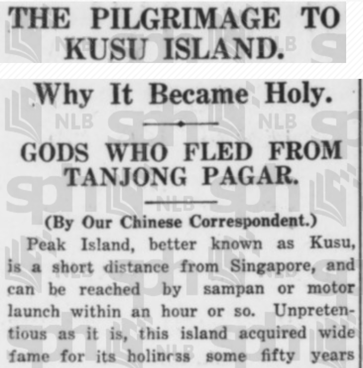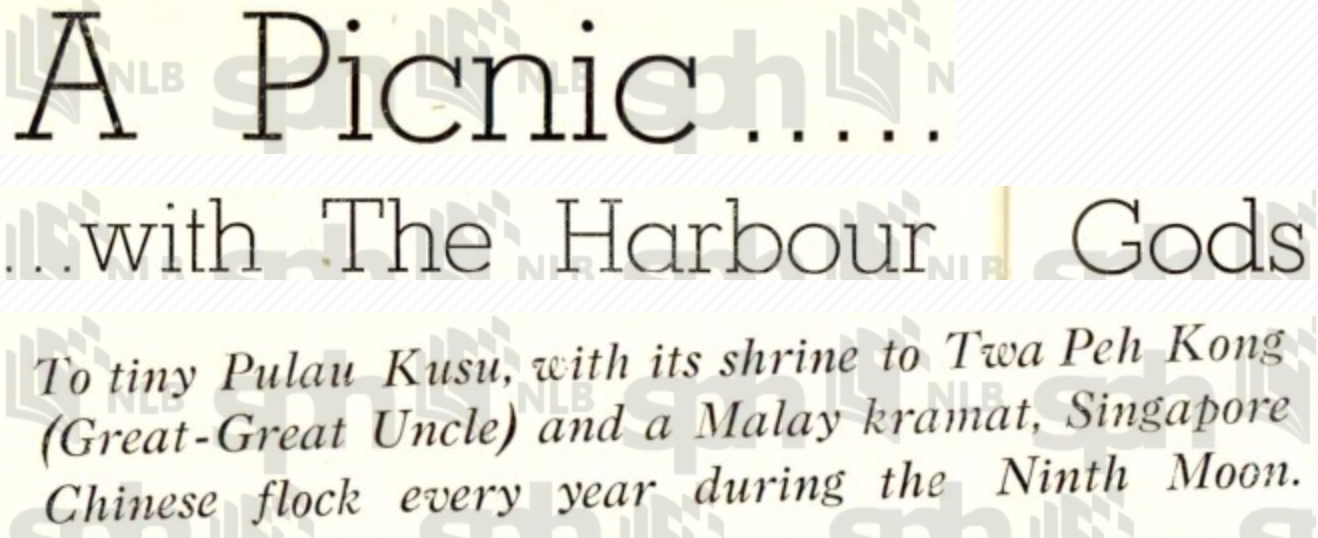 Contrary to Elliott’s descriptions on photographs of Kusu Island, this pilgrimage is not associated with the Chongyang or Double Ninth Festival falling in the same month.