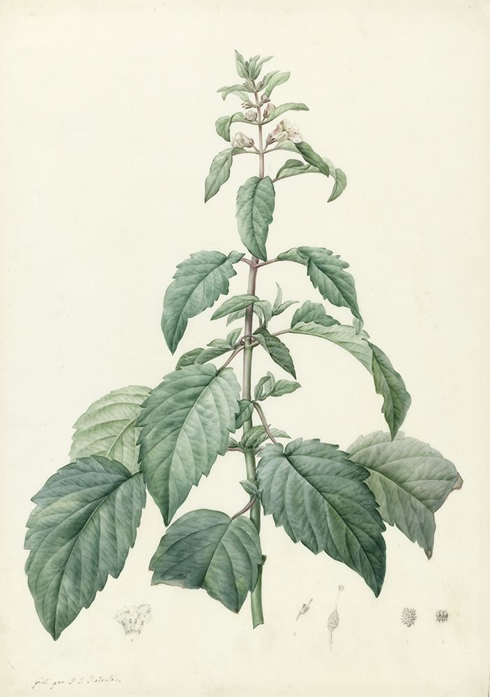 The next works in Lucian's selection are both inspired by a botanical watercolour in the Fitzwilliam Museum by Pierre-Joseph Redouté.