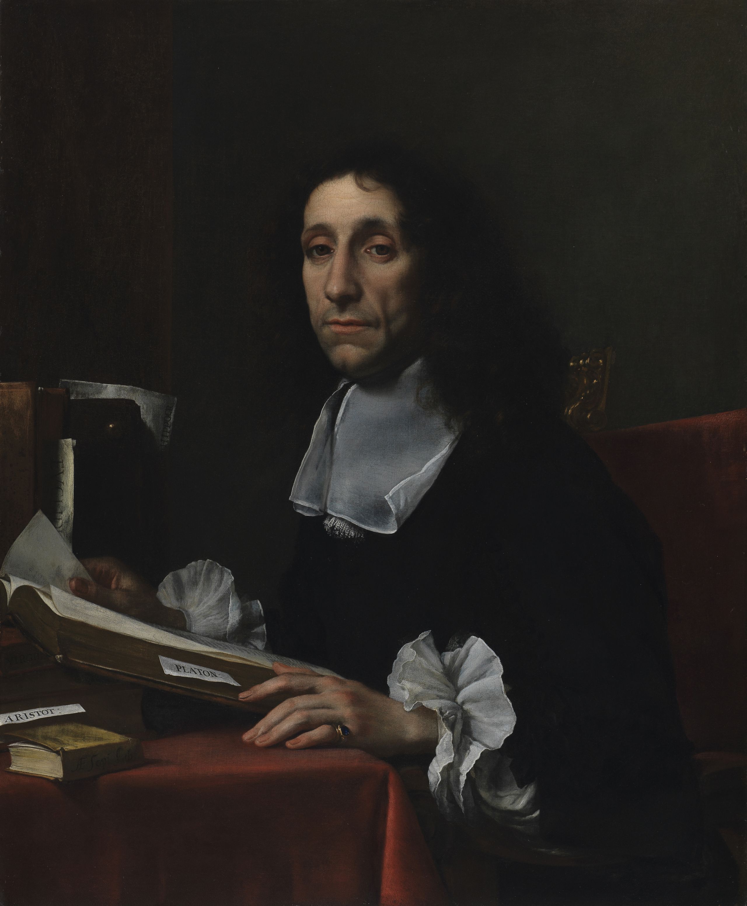 Finch commissioned the portraits from Carlo Dolci in 1665, during a diplomatic mission to Florence; he would later serve as British Ambassador to the Ottoman Empire. Baines is shown reading books of philosophy - including Plato - demonstrating his wide-ranging interests.