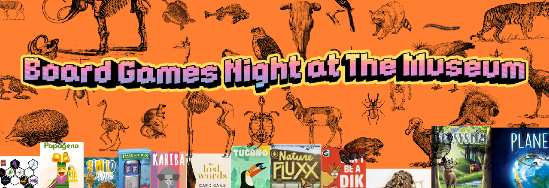 Canopy, Birdwatchers, Ecosystem, Planet, Hive, The lost words, Tucano, Don't be a Dik Dik, Snakes and ladders (Of course), Nature Fluxx, It's Bananas, and more.....