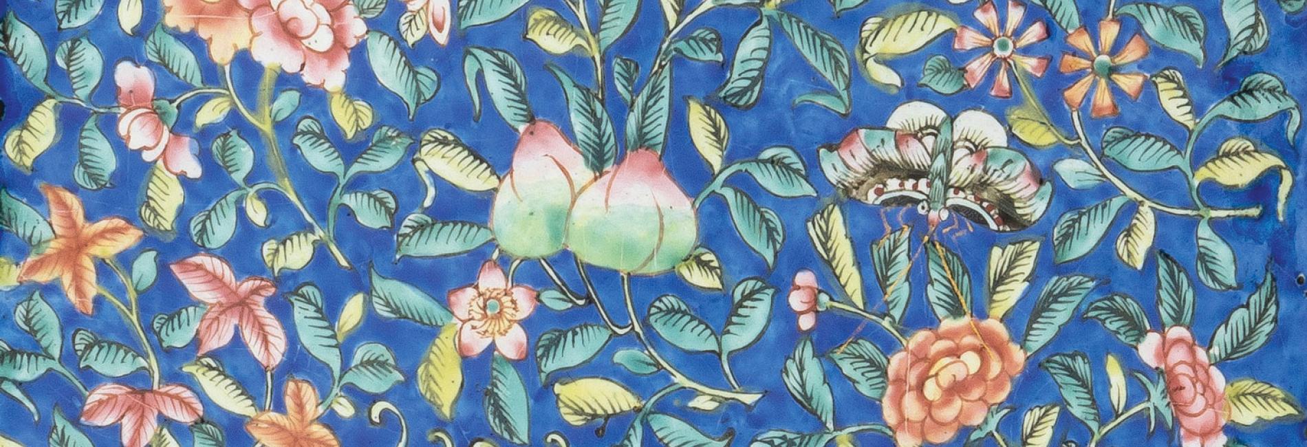Image: Detail of elephant–handled Zun Vase with Flowers, Fruits, and Insects. Late 18th to early 19th century. Copper. © Chinese University of Hong Kong Art Museum