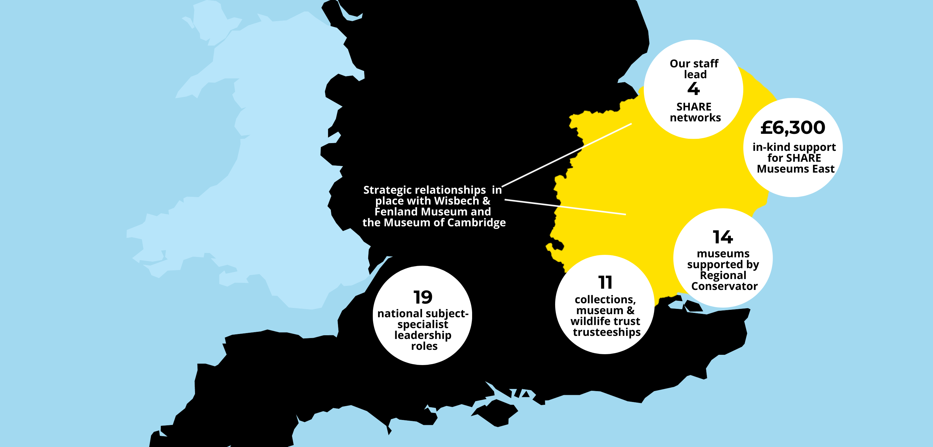 We play a national and regional sector support role, working closely with SHARE Museums East, our regional museums development provider.