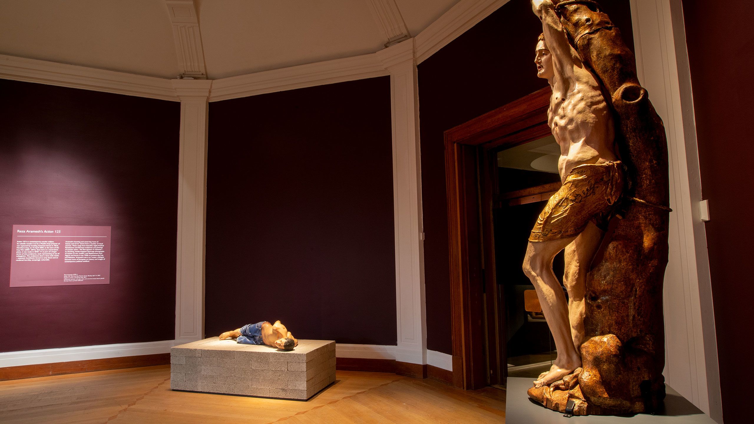 This display, shown in the Fitzwilliam Museum's Octagon Gallery, September - October 2020, considers our complex and contradictory reactions to two juxtaposed life-like male figures: St Sebastian, made by Spanish Renaissance artist Alonso Berruguete in the 1530s, and Action 125, made by Iranian-born, London-based artist Reza Aramesh in 2011.